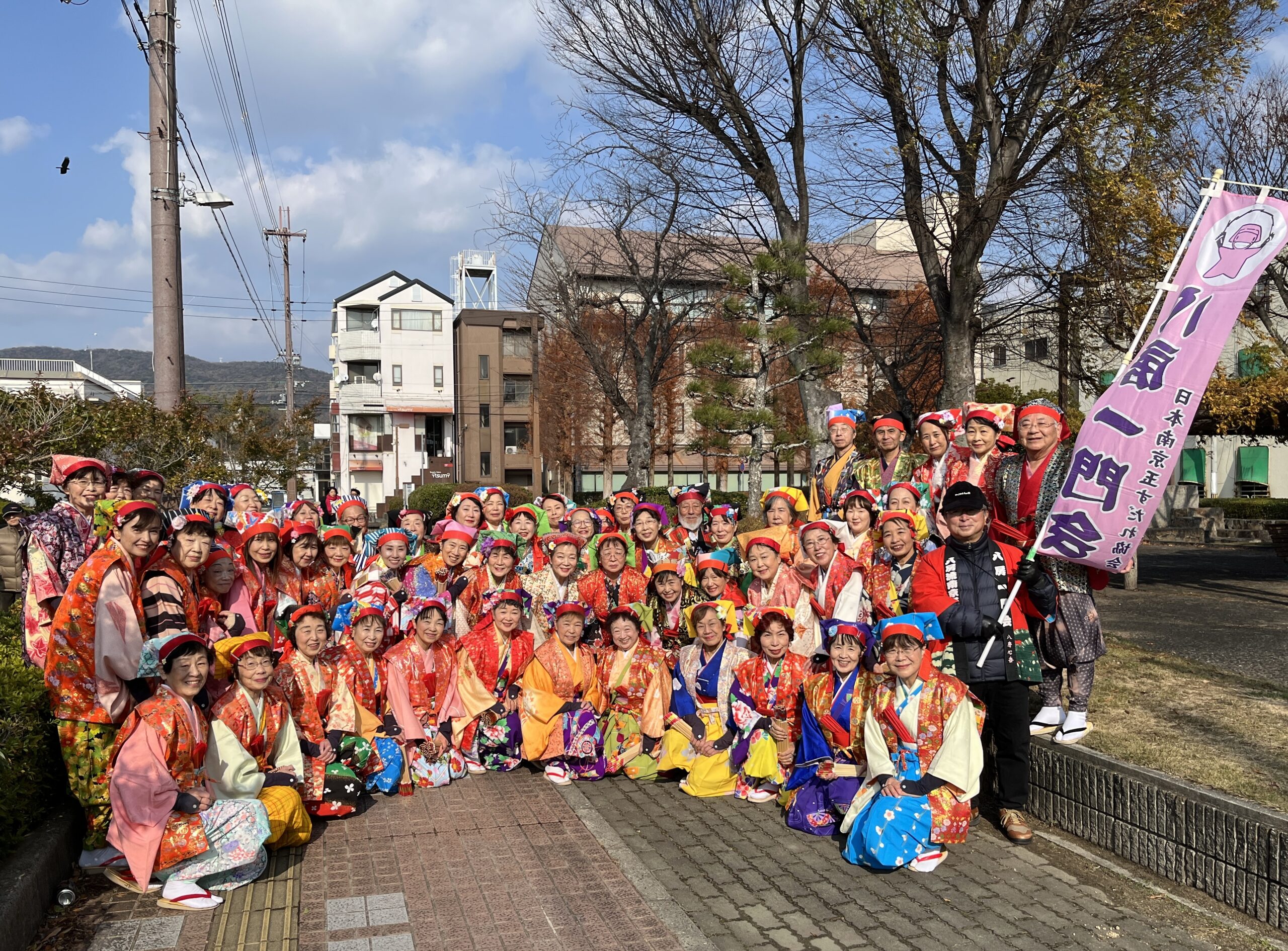 八房一門会からは、総勢80名が参加し、フラワーロードからおよそ1キロを笑顔で、元気に「神戸良いところ玉すだれ」を披露しました。