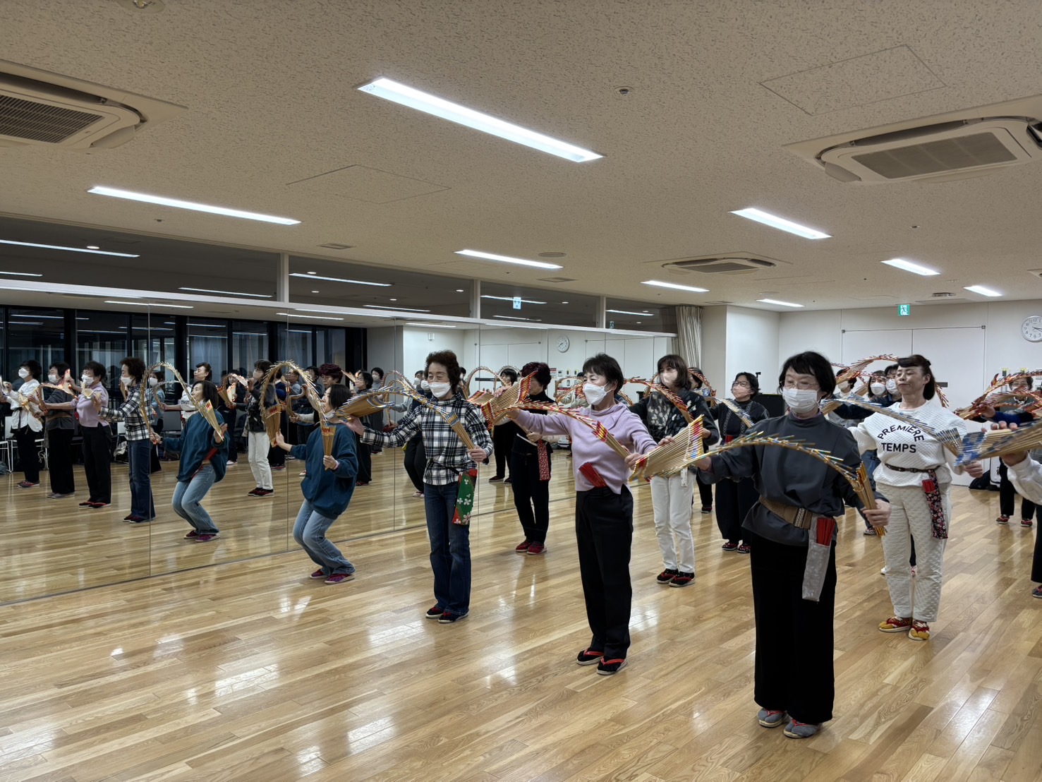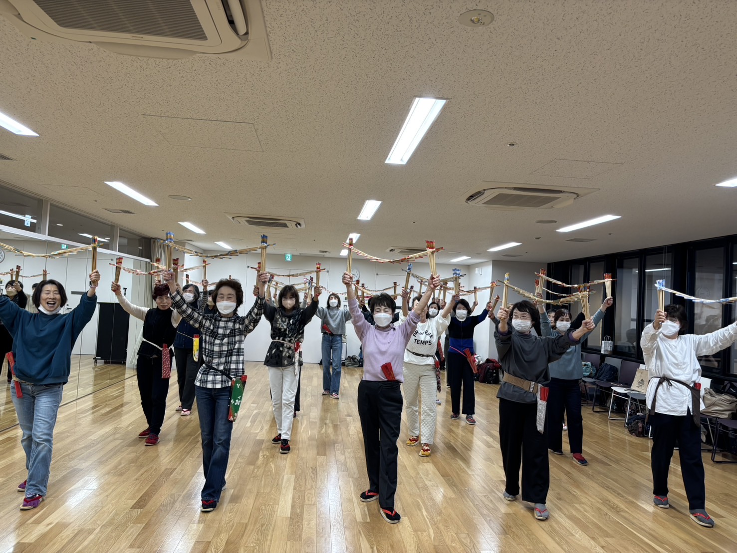 今年最後の例会日は、「来年も楽しく元気で、頑張りましょう。願いまして!」と男性師範のかけ声のもと、全員で「八房の原型」を演じ、今年の練習納めをしました。